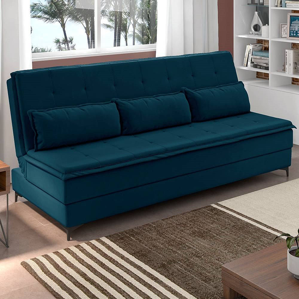 Sofá Cama Veludo Azul